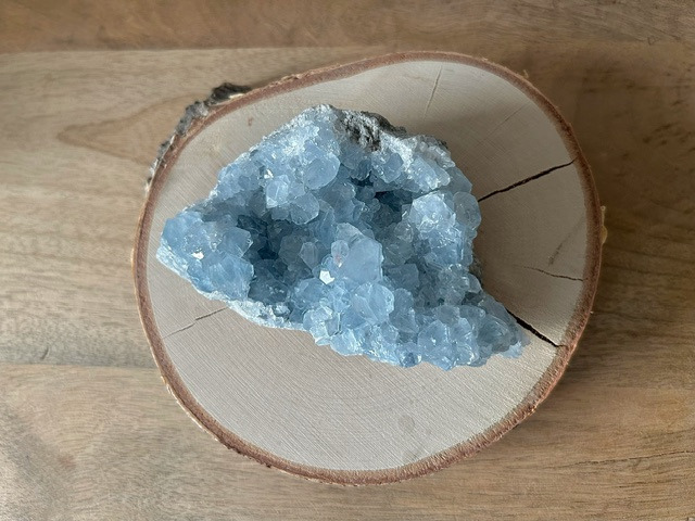 Blauwe celestien uit Madagascar zien we vooral in clusters of geode's, die heel geschikt zijn om neer te zetten in je slaapkamer of een healing- of meditatieruimte, want de steen zuivert de omgeving en is een bron van zachte, positieve energie. De vibraties stralen naar alle richtingen uit, waardoor het een prettige steen is om om je heen te hebben.