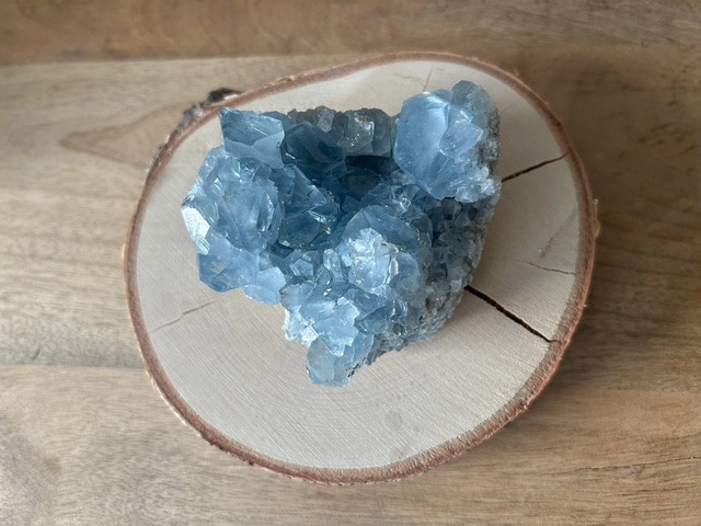 Blauwe celestien uit Madagascar zien we vooral in clusters of geode's, die heel geschikt zijn om neer te zetten in je slaapkamer of een healing- of meditatieruimte, want de steen zuivert de omgeving en is een bron van zachte, positieve energie. De vibraties stralen naar alle richtingen uit, waardoor het een prettige steen is om om je heen te hebben.