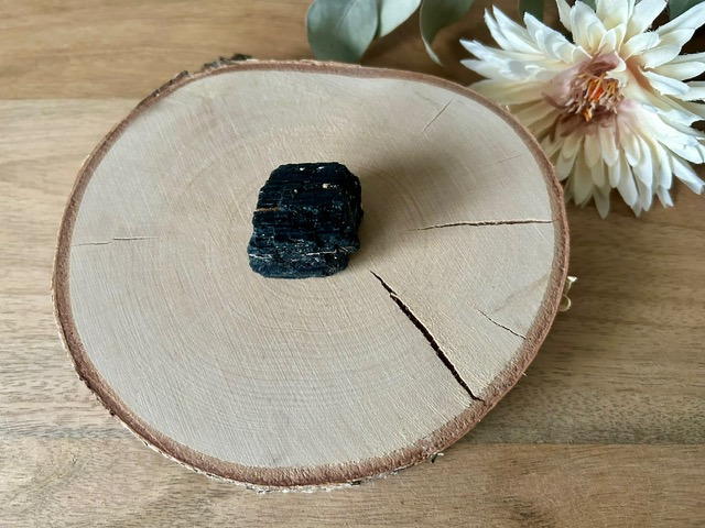 Zwarte Toermalijn is een dichte, ondoorzichtige steen, hij kan verticale striaties (krassen of inkepingen die ontstaan tijdens het groeiproces van de steen) vertonen, een veelvoorkomend kenmerk van alle typen Toermalijn.