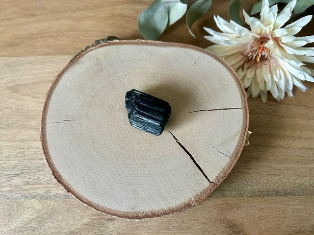 Zwarte Toermalijn is een dichte, ondoorzichtige steen, hij kan verticale striaties (krassen of inkepingen die ontstaan tijdens het groeiproces van de steen) vertonen, een veelvoorkomend kenmerk van alle typen Toermalijn.