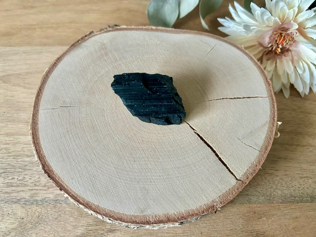 Zwarte Toermalijn is een dichte, ondoorzichtige steen, hij kan verticale striaties (krassen of inkepingen die ontstaan tijdens het groeiproces van de steen) vertonen, een veelvoorkomend kenmerk van alle typen Toermalijn.