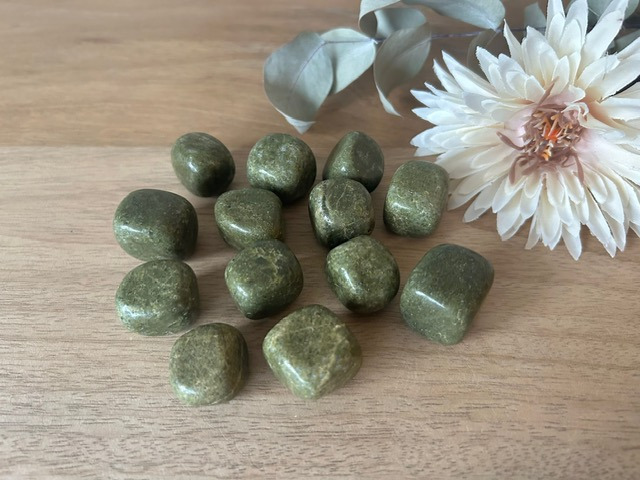 Vesuvianiet trommelstenen kunnen helpen om je lichaam, denken en geest op elkaar af te stemmen, zodat alle aspecten vanzelf in balans komen. Hij helpt je om overtollige mentale energie te aarden en om het lichaam af te stemmen op de wil. Hij geeft je daadkracht.